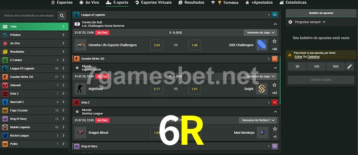 A aposta 6R oferece aos jogadores a experiência mais conveniente de apostas em eSports!